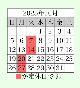 7日(火)、14日(火)は休業日となります。